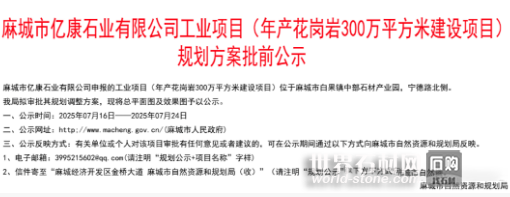 石材網(wǎng)報道:在 “中國花崗石之鄉(xiāng)” 麻城的產(chǎn)業(yè)沃土上,又一顆石材新星冉冉升起。近日,麻城億康石業(yè)有限公司在中部石材產(chǎn)業(yè)核心區(qū)正式開業(yè),以 2000 萬元注冊資本為基石,攜 “礦山直供 + 智能加工 + 雙渠營銷” 的全產(chǎn)業(yè)鏈布局,為麻城打造世界級石材產(chǎn)業(yè)集群注入新動能。這座占地 75 畝的現(xiàn)代化生產(chǎn)基地,不僅配備國際先進生產(chǎn)線實現(xiàn)年產(chǎn) 300 萬平方米花崗巖的產(chǎn)能突破,更憑借芝麻白、芙蓉白等核心產(chǎn)品的高品質(zhì)優(yōu)勢,成為高端工程領(lǐng)域的新晉實力服務(wù)商。