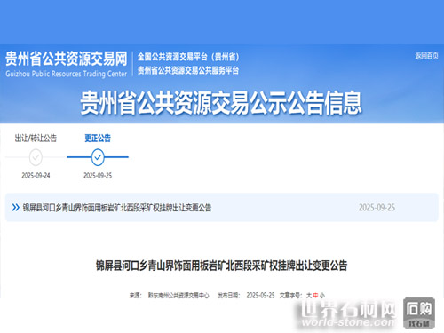 石材網獲悉,2025年9月24日,貴州省公共資源交易網發布黔東南州錦屏縣河口鄉青山界飾面用板巖礦北西段采礦權掛牌出讓公告,引發行業關注。此次掛牌的采礦權資源儲量豐富,開發潛力巨大,為近年來省內少見的大型飾面石材礦權出讓項目。