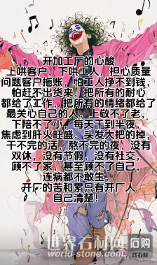 石材加工的利潤(rùn),卻看不見(jiàn)藏在粉塵里的心酸;只羨慕當(dāng)老板的體面,卻看不見(jiàn)深夜獨(dú)自扛下的壓力。開(kāi)石材廠的苦,是說(shuō)不出口的累,是藏不住的虧欠,是只能自己咽的委屈。這份苦,唯有同行者,方能懂幾分。